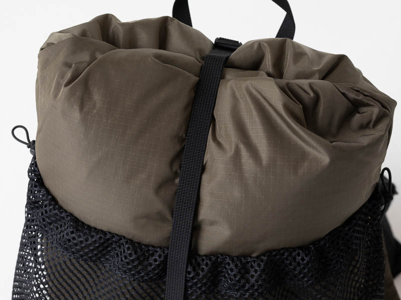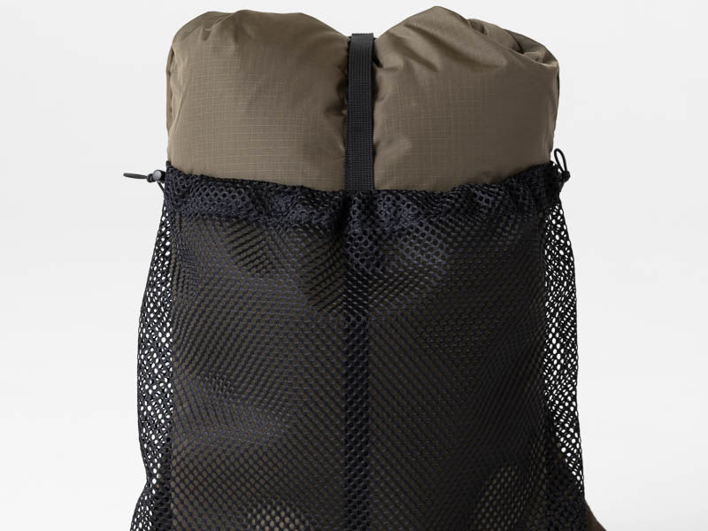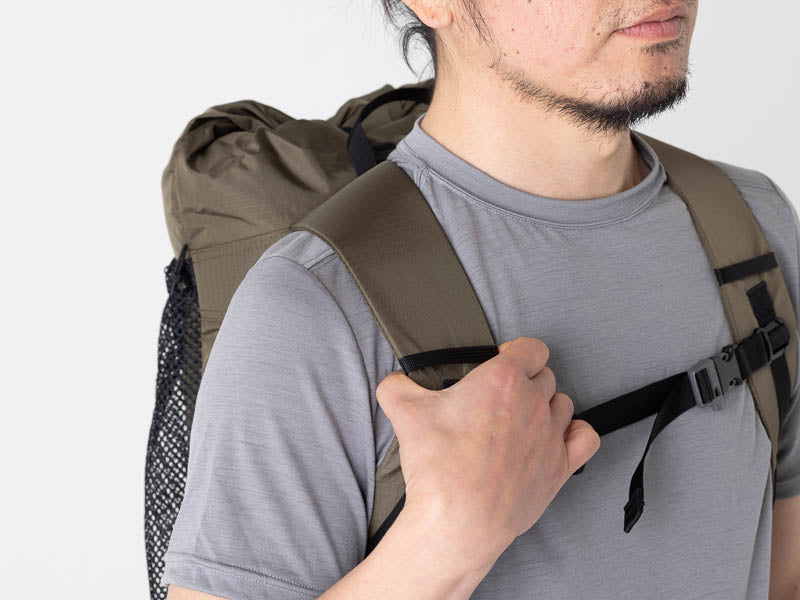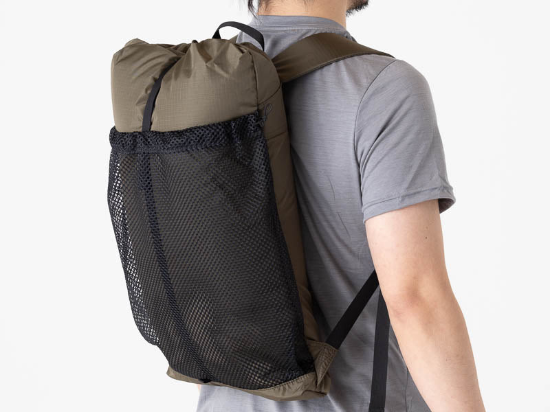 小さいからと言って別にデイハイキング専用ではありません。小屋泊まりから、その気になったらオーバーナイトも可能!?。トレイルバムたちの想像を掻き立てるバックパックはそう多くありません。考えて使いこなすことは道具を使う楽しみを存分に味わうことです。マチが薄いので少量の荷物でも偏りが少なくバランスよく背負えます。
